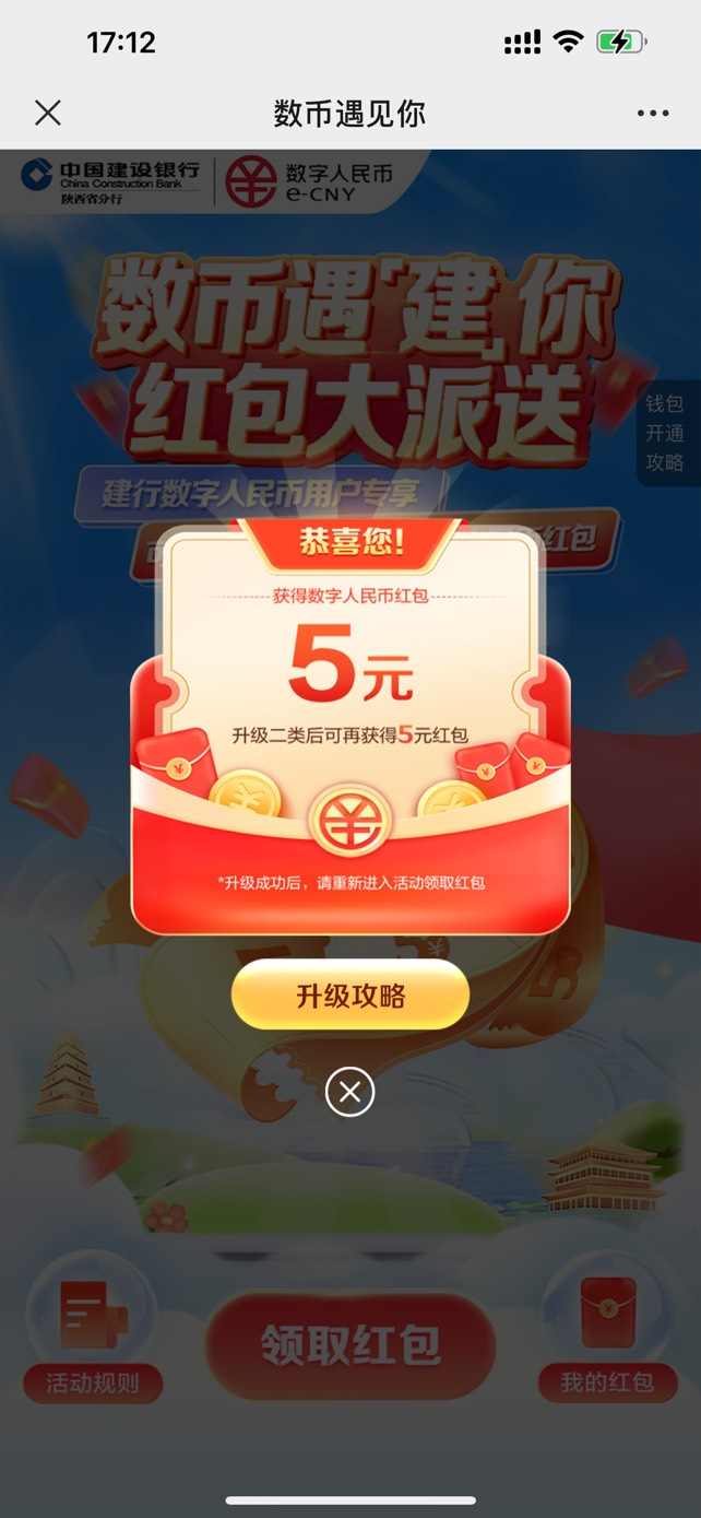 建行通用5数币,爱加速挂西安ip开4类。然后v定位西安扫码领5通用数币