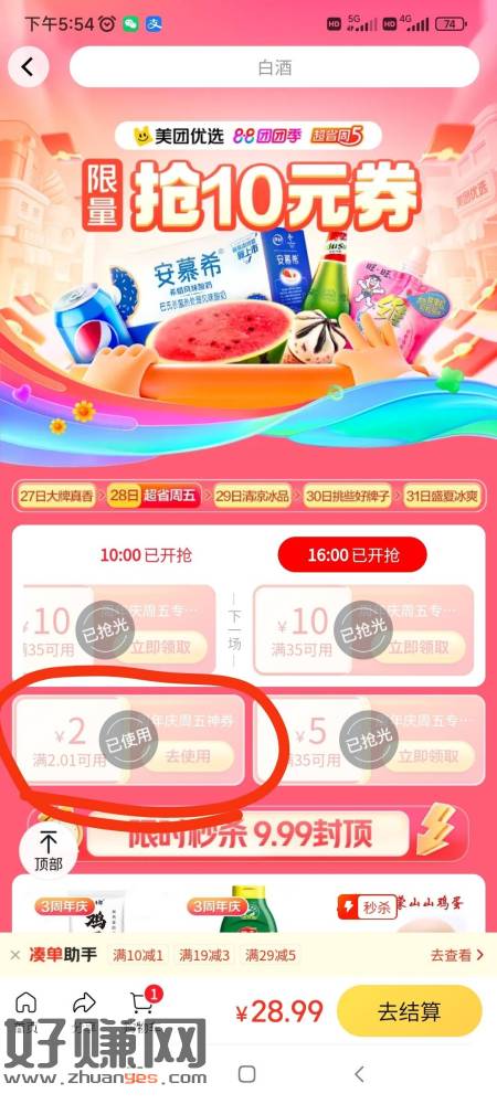 美团优选2元通用券,打开美团app,然后打开美团优选栏目,有的号是七折,有的号是2元通用,现在还有的,买菜用,我买的饮料0.99,地方不一样商品不一样