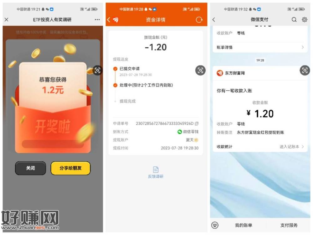 微信打开乱,目前必中去东方财富App我的钱包提现