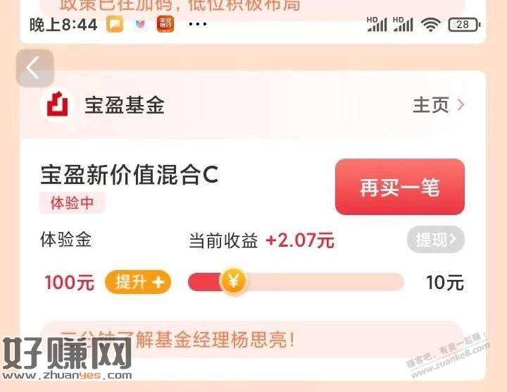 天天基金一个基金体验可以提现了