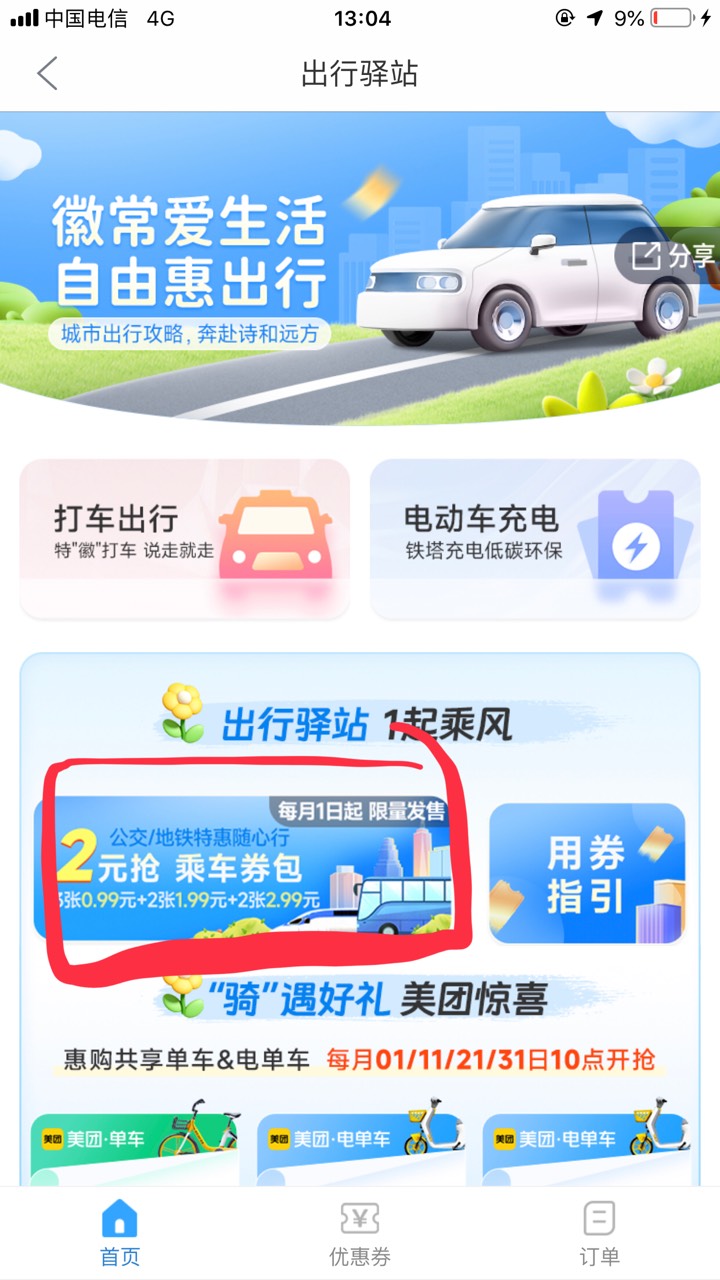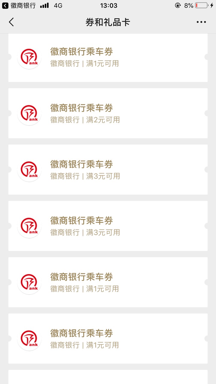 月底查漏补缺,徽商银行乘车券2买13用深圳通t,润11。