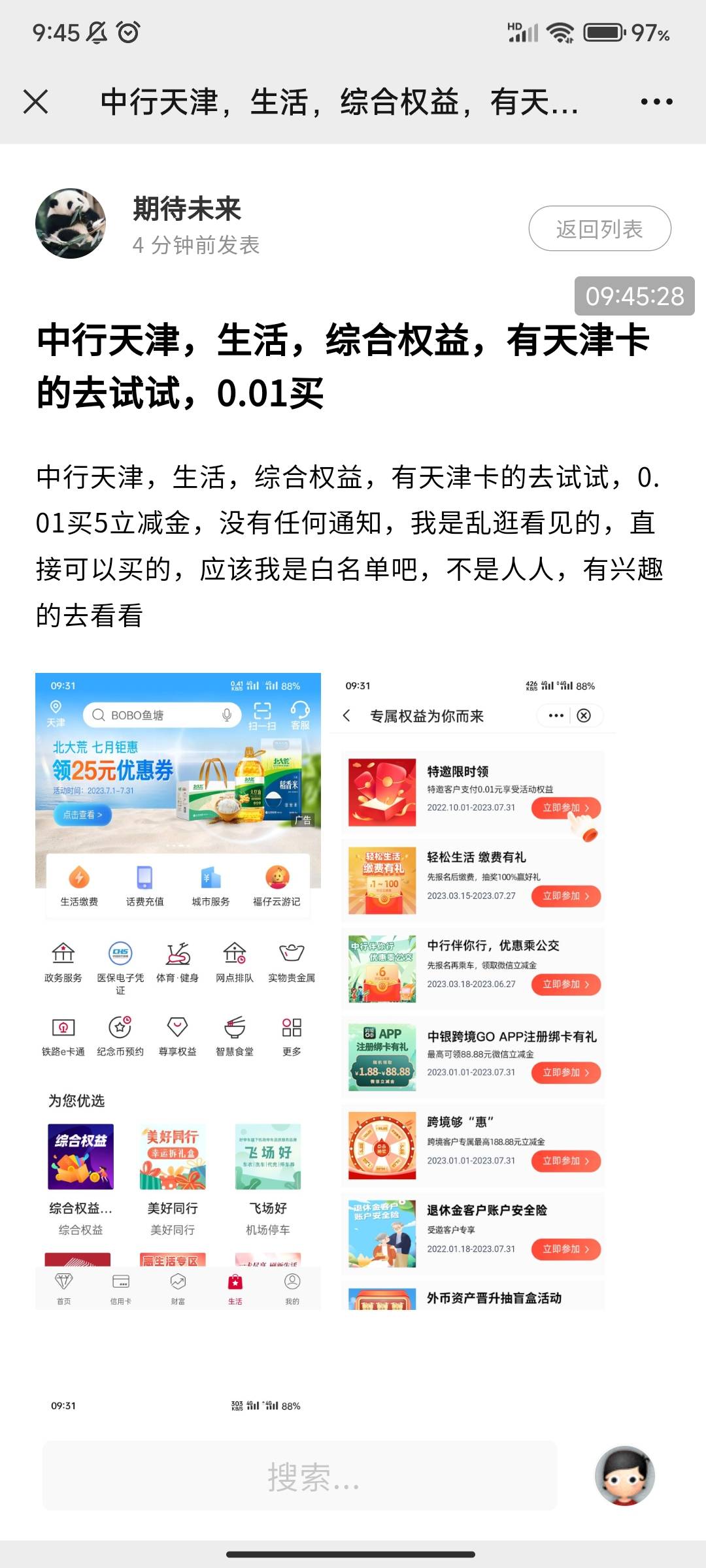 中行天津,生活,综合权益,有天津卡的去试试,0.01买5立减金,来自转