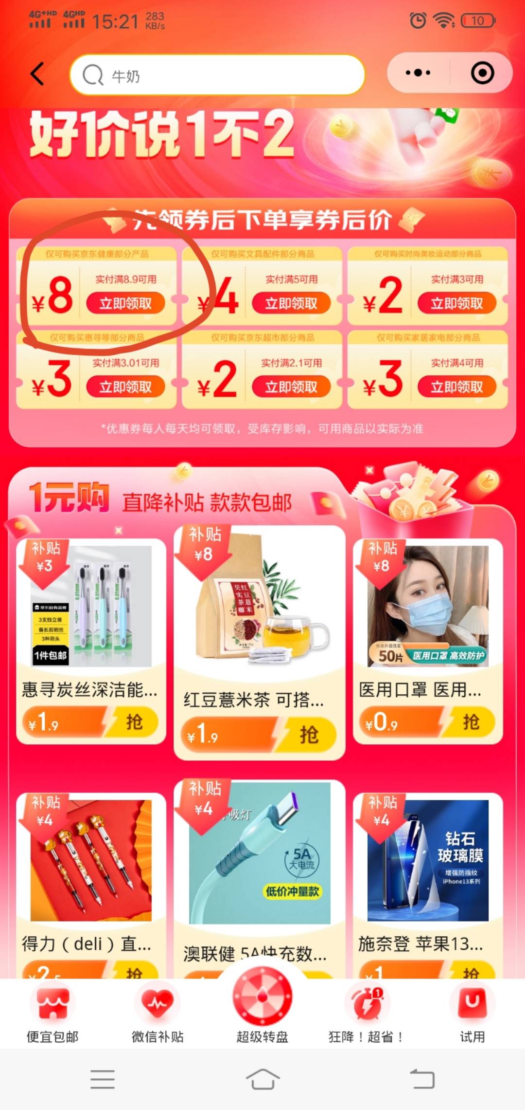 1元购 V信-发现-购物 领取8.9减8元券