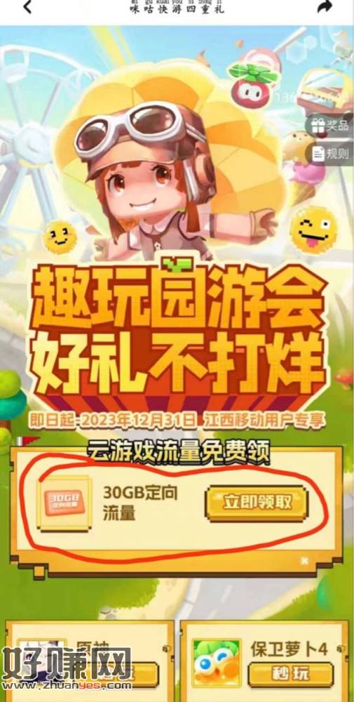 中国移动咪咕快游玩游戏领流量啦{限江西用户}