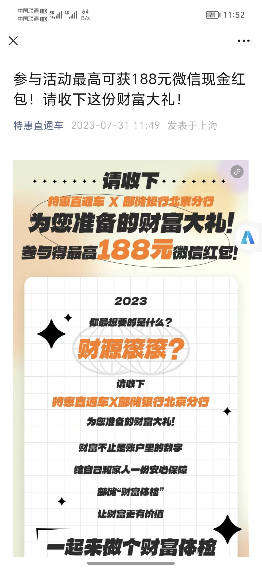 gzh特惠直通车推文添加邮储客服,最高188,欧皇上。给我1.2。不清楚多v,自己试