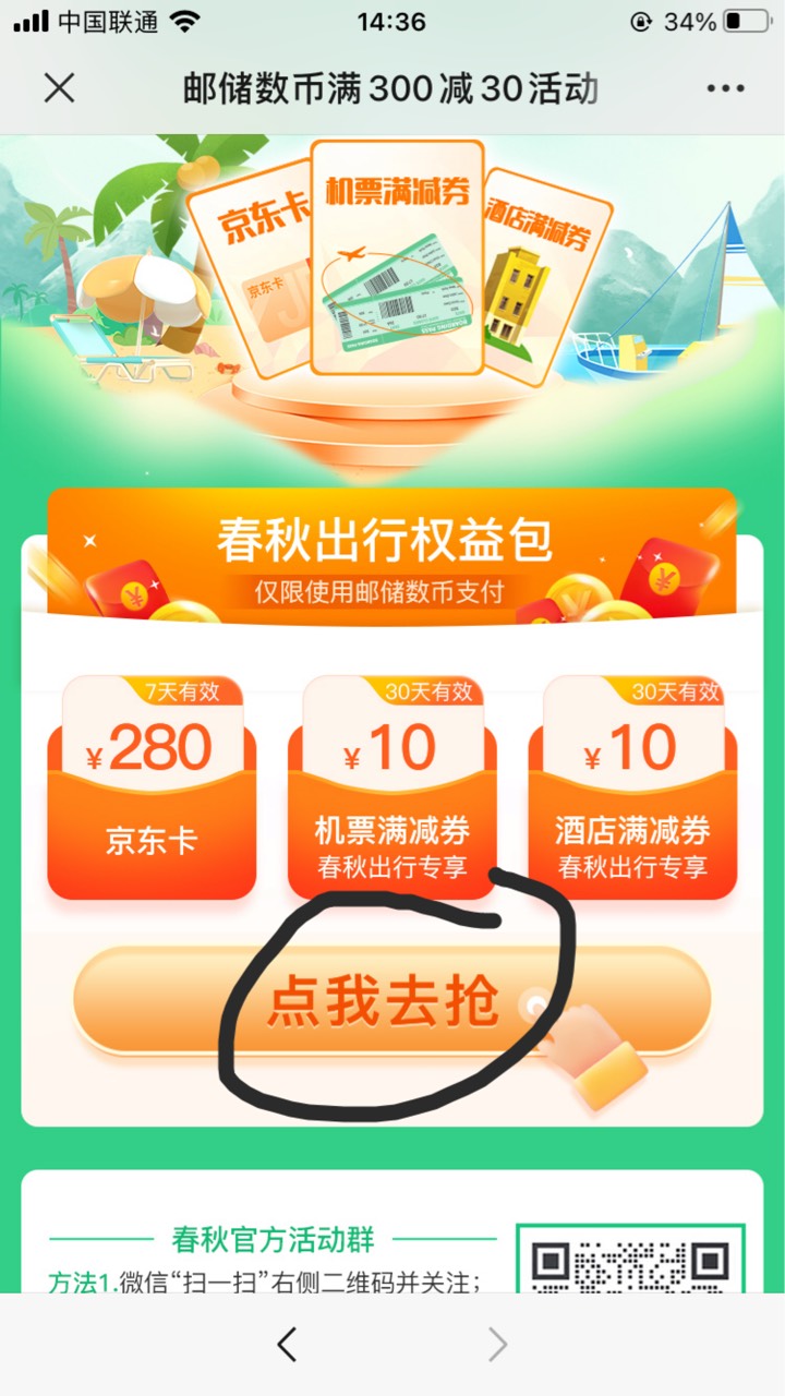公众号玩赚春秋邮储数币300-30,四类钱包都可以,270买280京东