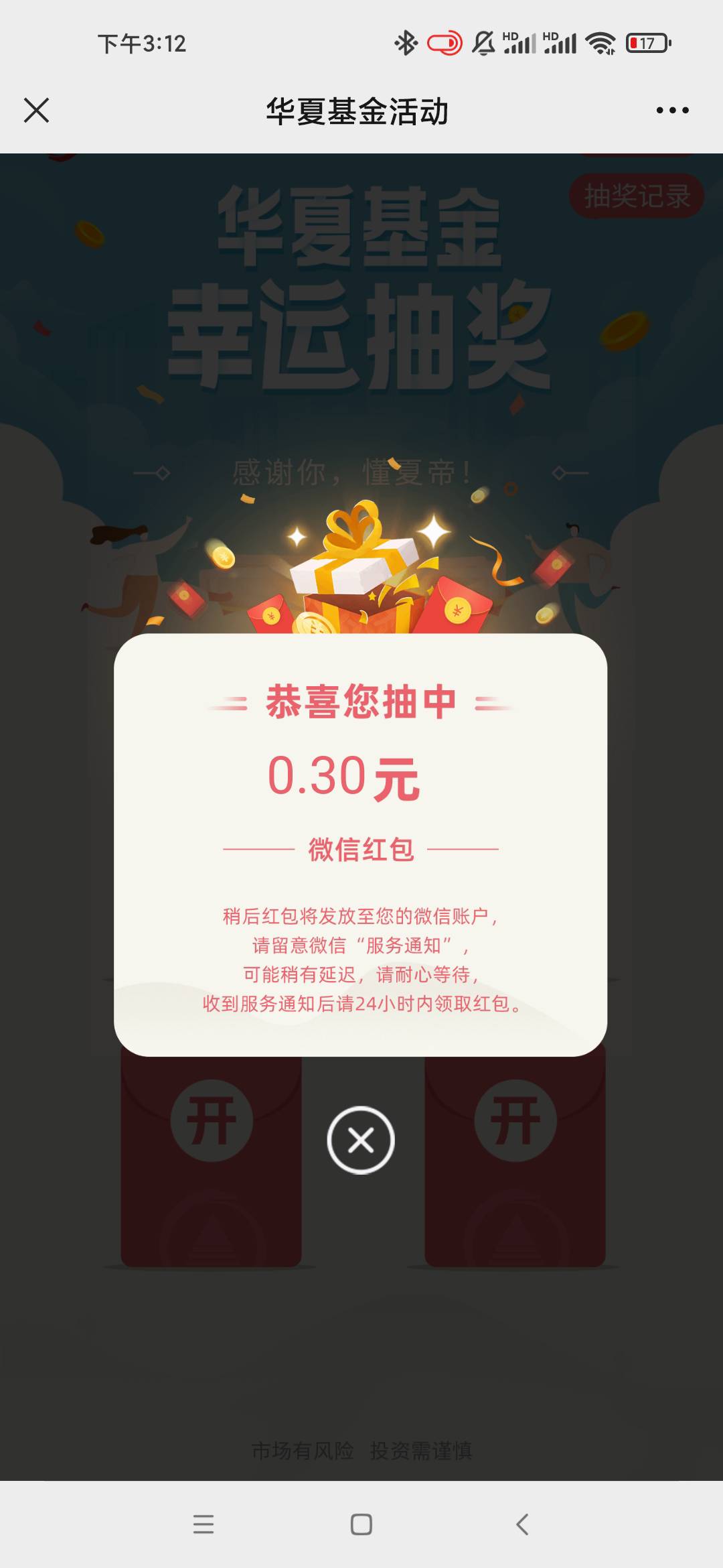小毛关注H夏基金公众号,今天推文,最低0.3直接到微信