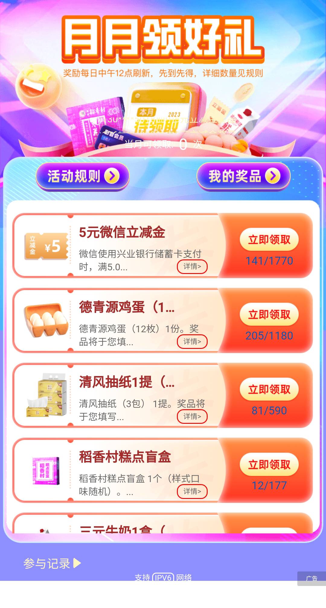 兴业银行北京月月有礼更新 保底5立减金 也可以选实物