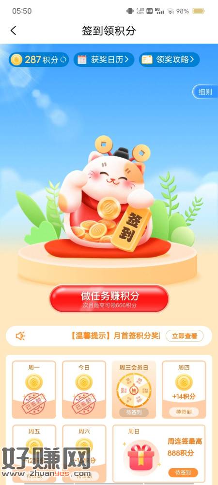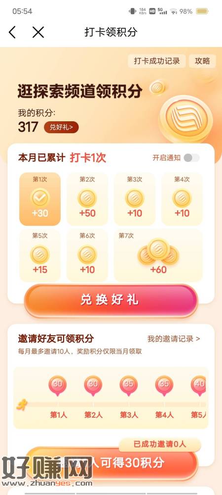 和包小程序 打卡 一个月拿三次积分 每次几十几百不等商城积分 凌晨去 先到先得(图二)