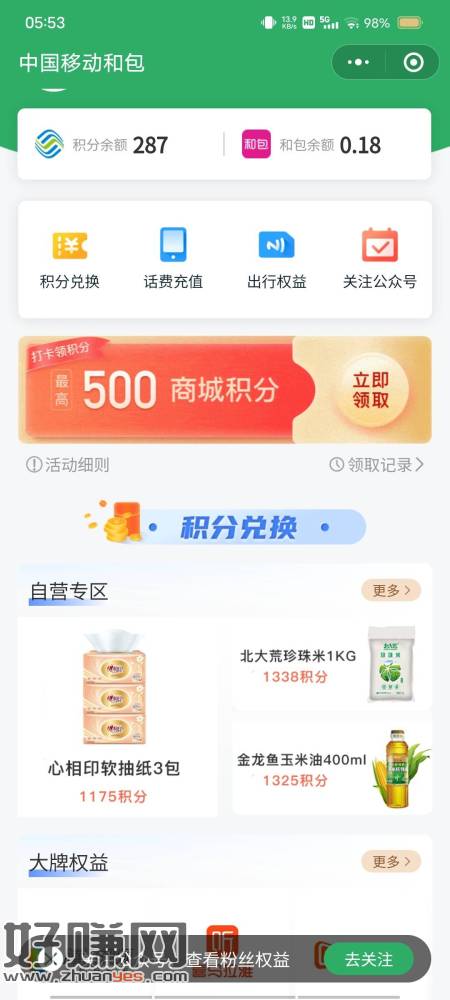 中国移动APP 搜索 打卡 每天去 几十积分不等(图三)