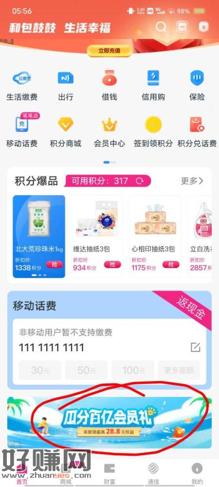 中国移动和包APP 商城积分(怎么获取积分,怎么使用积分换现