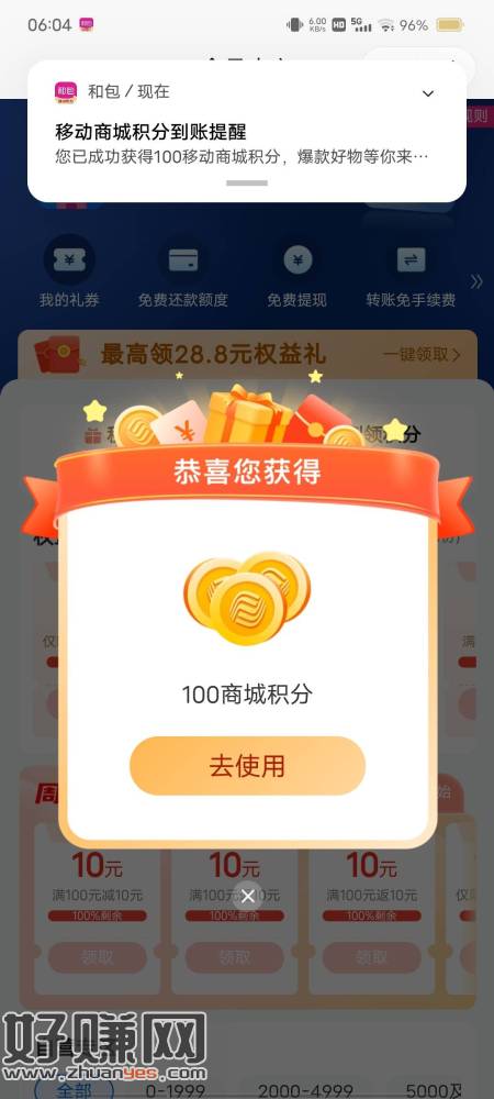 中国移动和包APP 会员中心 权益好券 100商城积分