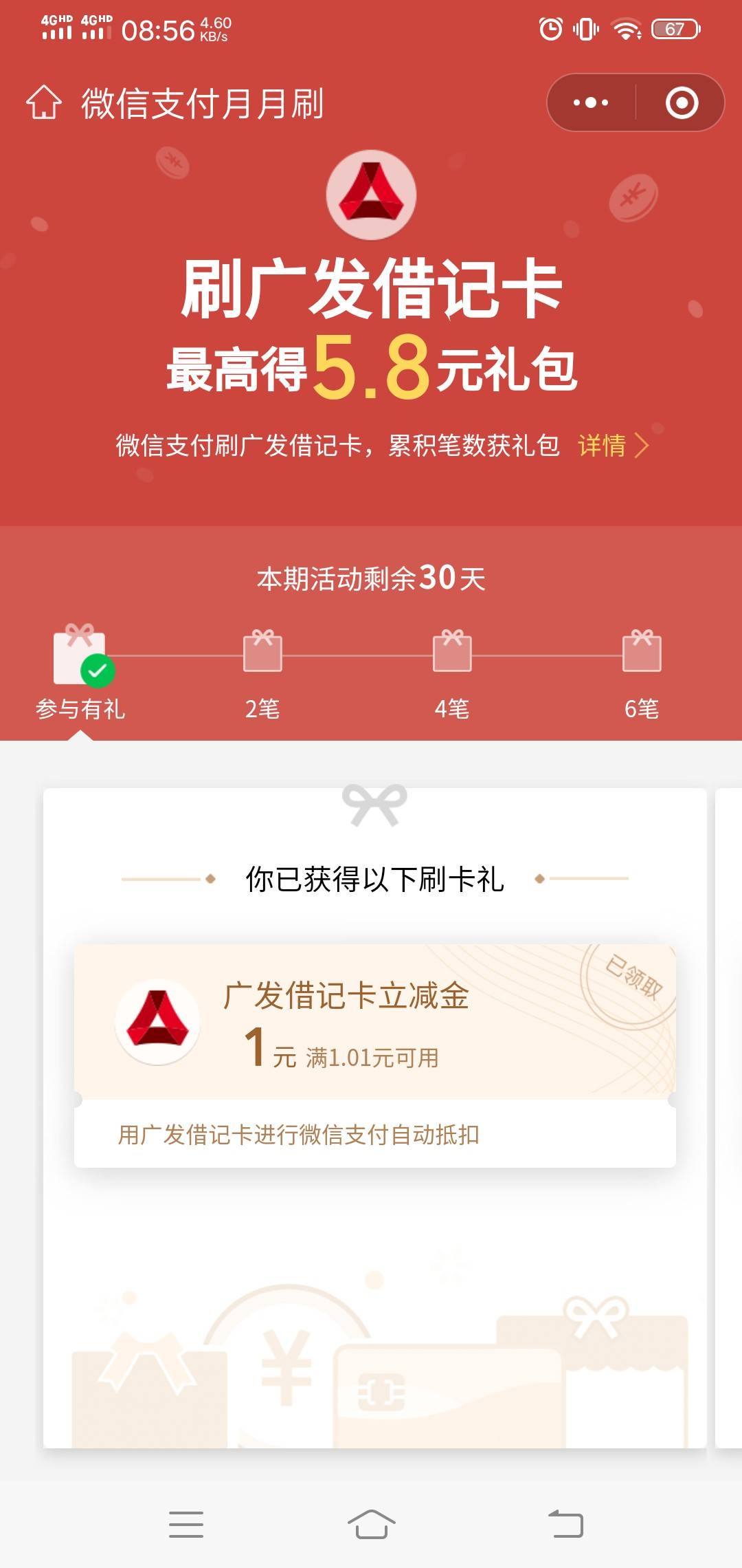 鸿蒙4.3以下系统新出了个签到活动,入口在负一屏,最高8元优