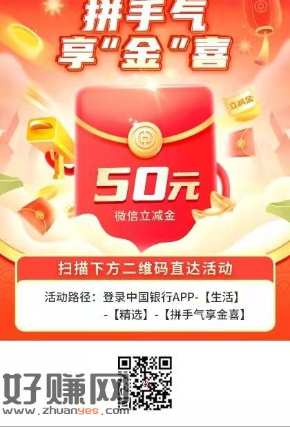 新河北中行手机银行扫得50元立减金,只限河北别的地区不用扫。每月参与一次。
