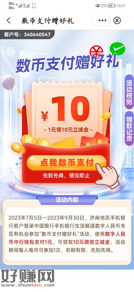 往下滑数币专区,数币1买10立减金