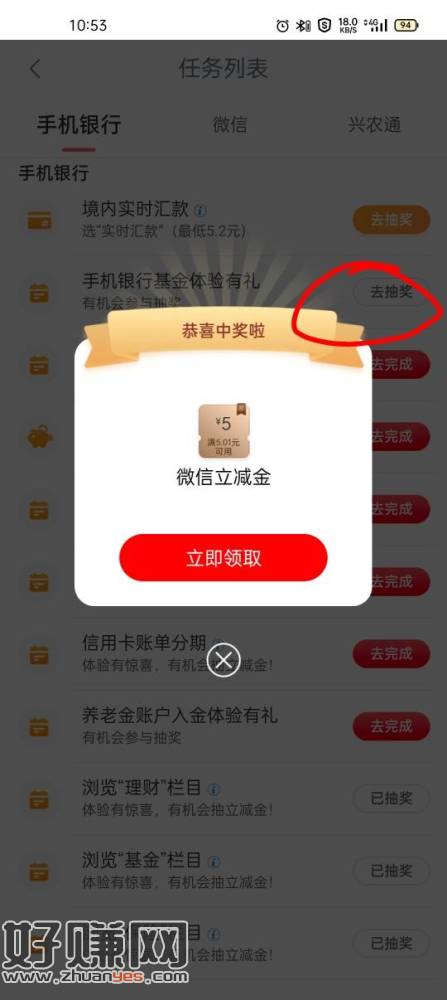 工商银行,任务中心,手机银行基金体验有礼