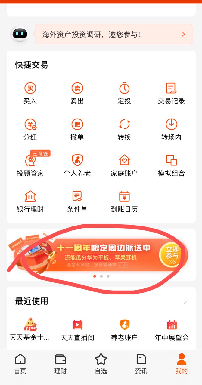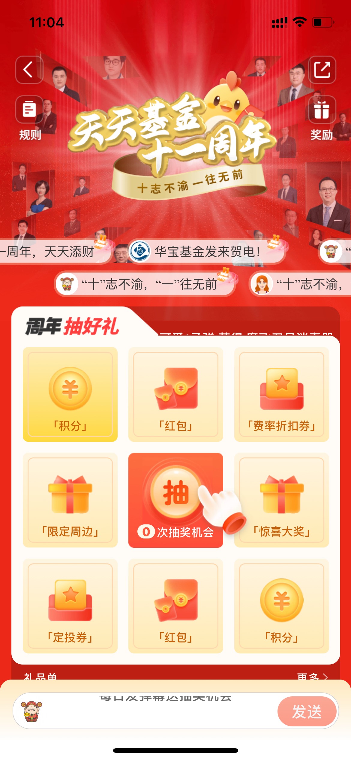 天天基金周年活动,不黑的去吧!我就中了0.88。图2下面有增加抽奖次数