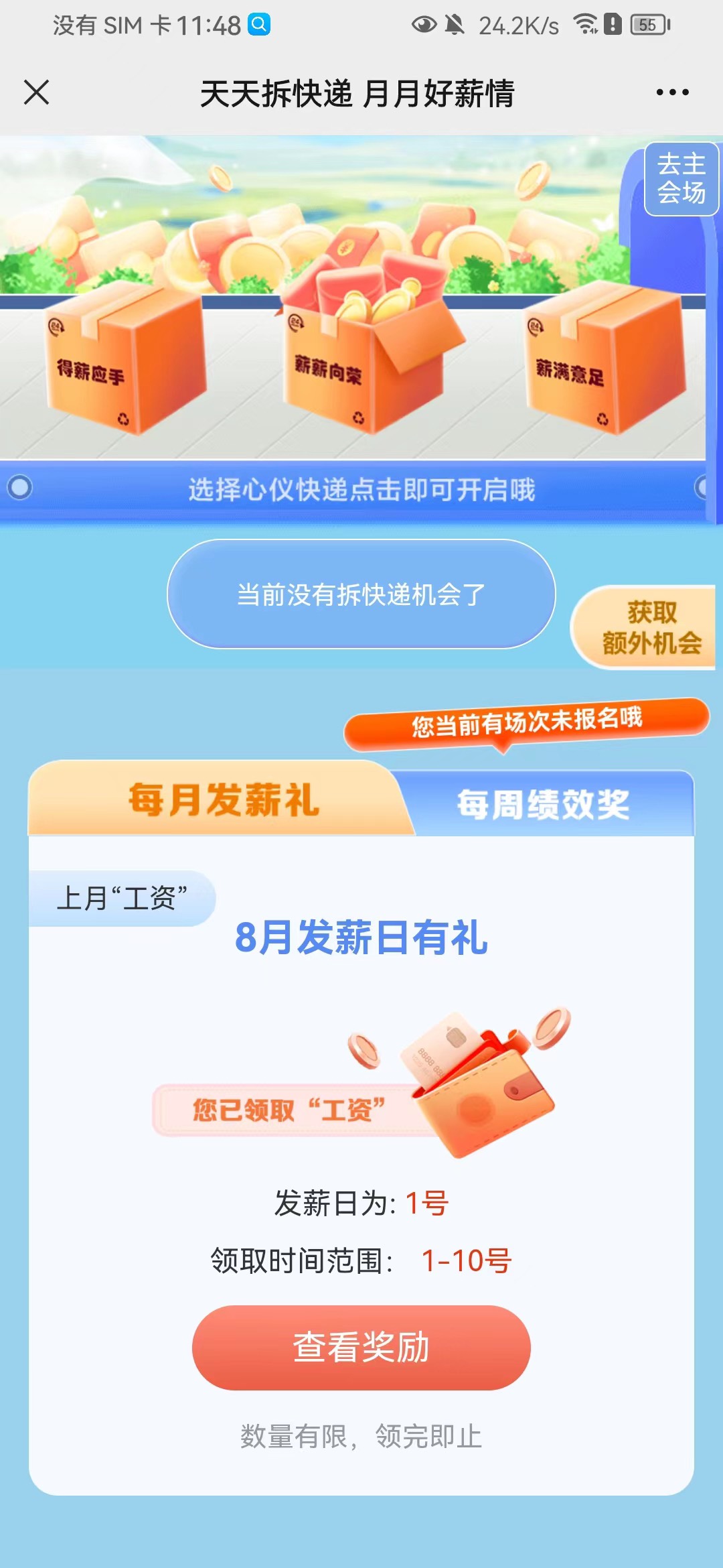 建行奋斗季 代发专区 发薪日有礼 设置1号发薪日 我抽到了10E卡