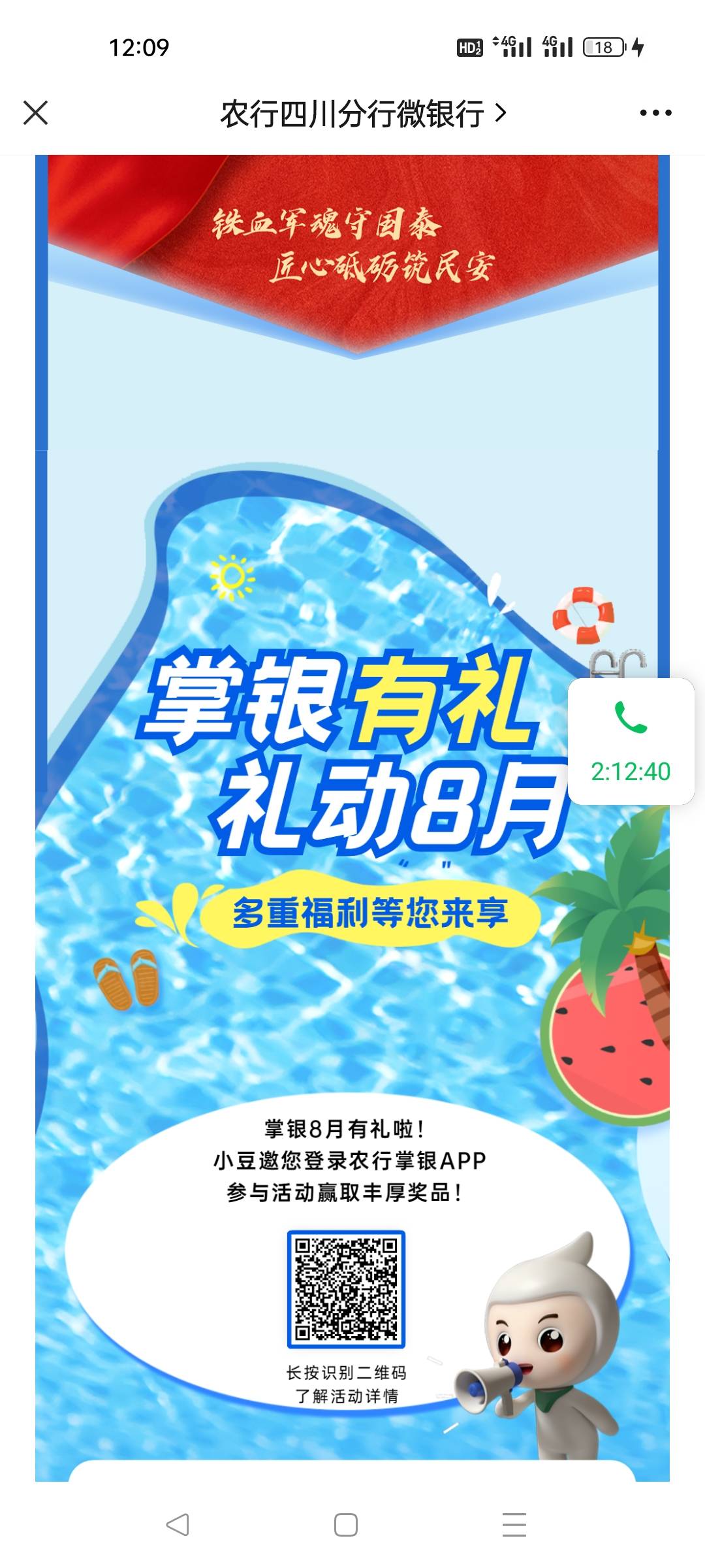 四川农行活动八月更新了,公众号农行四川微银行,自测。。