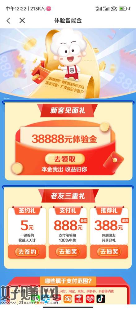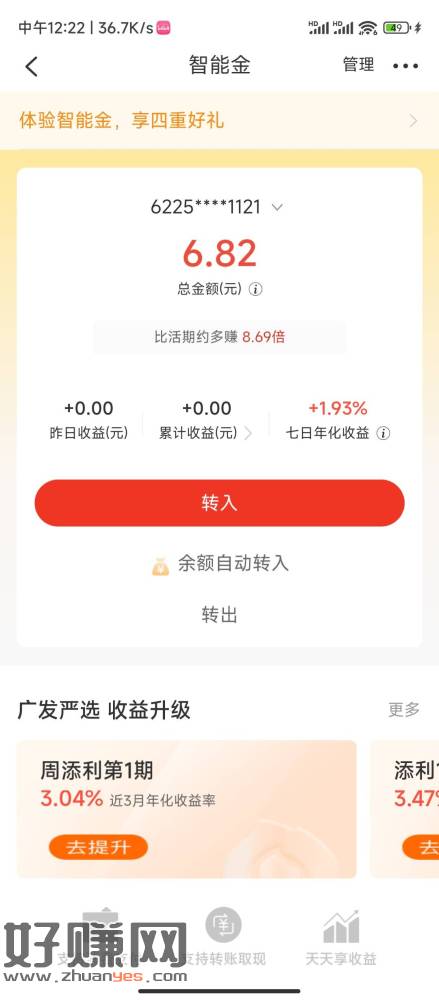 广发智能金刷新了,跟余额宝零钱通一样,一个月刷三笔抽3次,看脸中888。