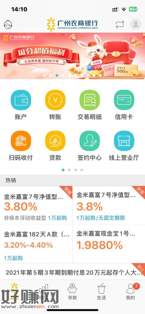 广州农商行首页横幅第三个抽立减金 老活动了 假分两次机会