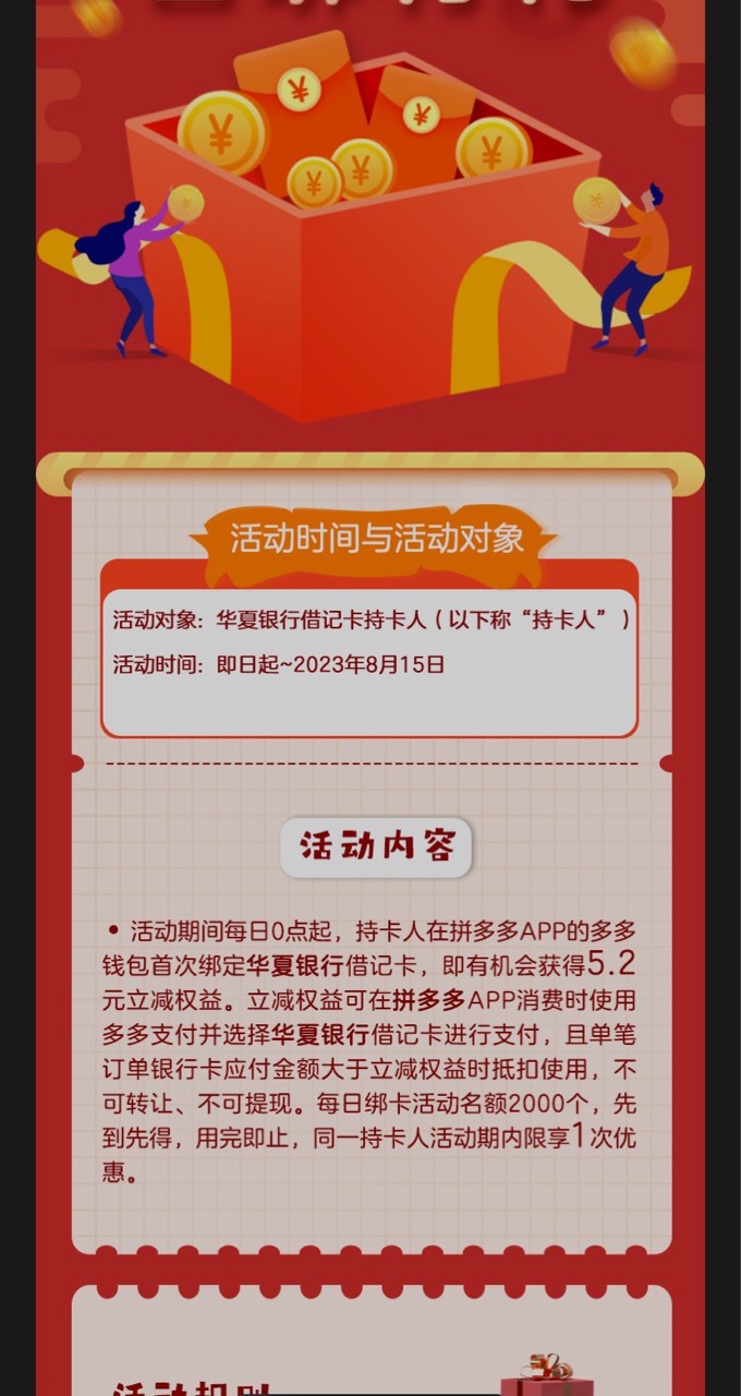 首绑有礼丨H夏借记卡首绑多多钱包支付享5.2元立减金