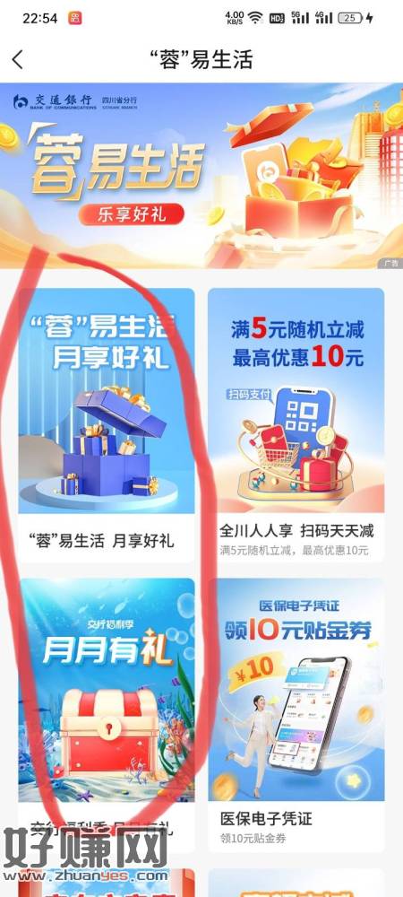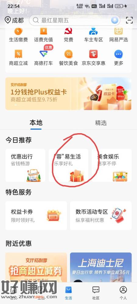 交行生活专区,左上角改成都,第一个必得二限制四川卡