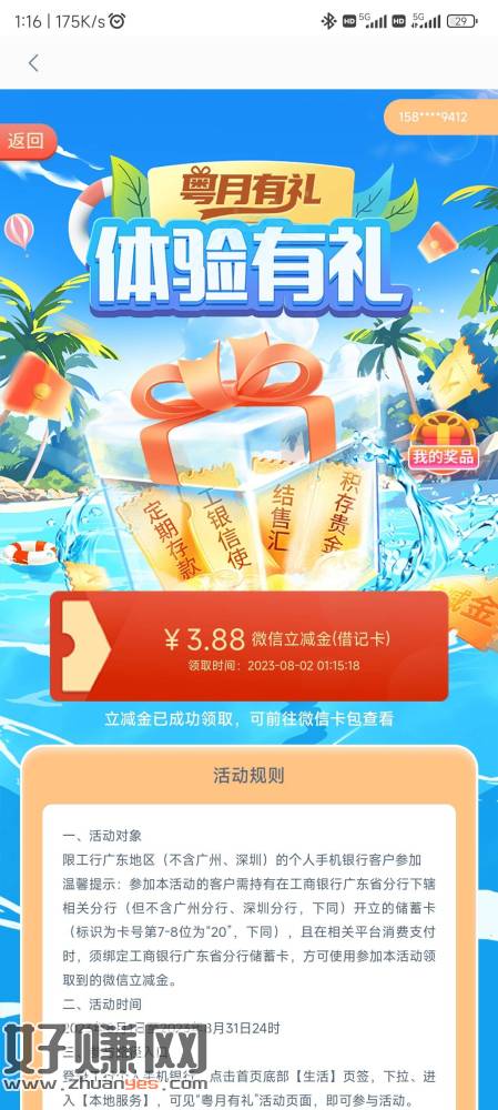 工行广东的,首页横幅直接进去参加这个活动,必中3.88,直接