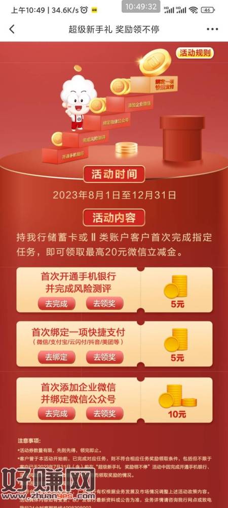 农行,一共中了8元微信红包