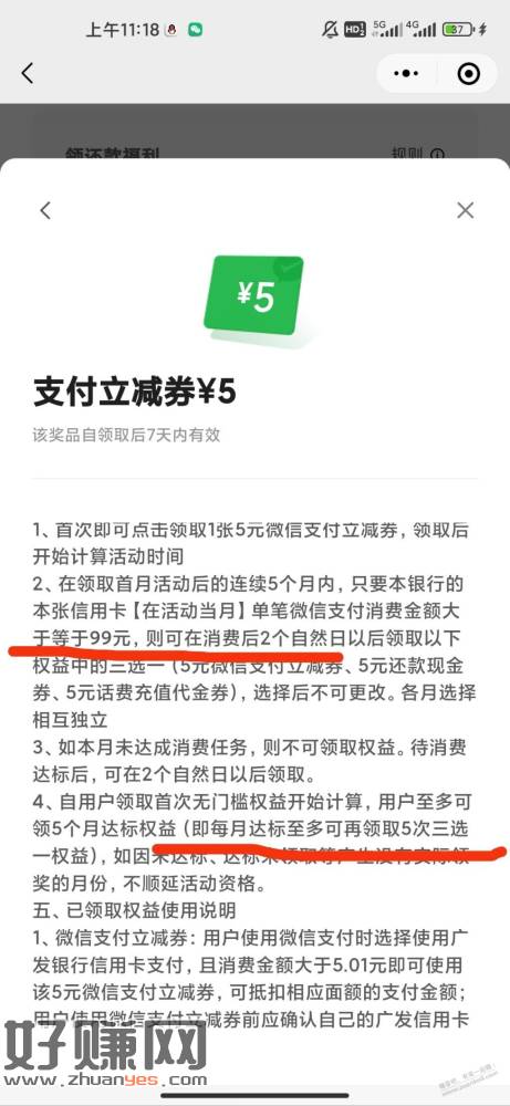 白名单受邀用户首月5r,之后每月消费达标99,2个工作日后领5r,连续5个月