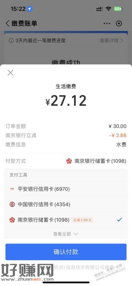 坐标025缴的水费 南京银行 30-4.88 2.88
