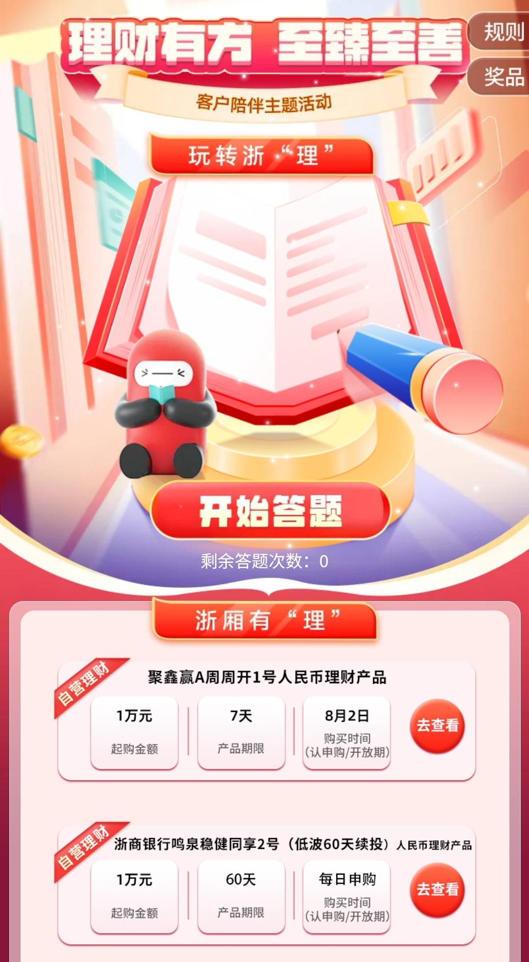 浙商银行19th答5题抽最高10元立减金 需前往线下网点办理储蓄卡参与