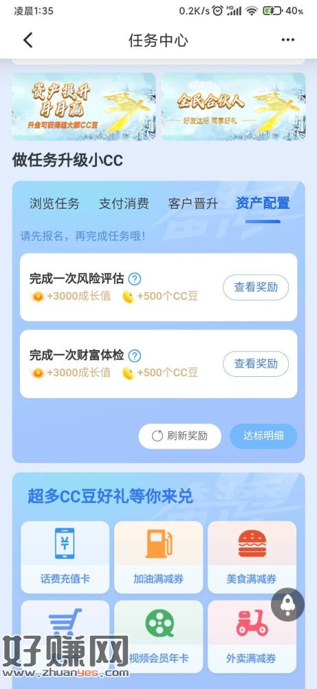 建设银行CC豆任务中心-资产配置看看这个两个任务是不是更新了