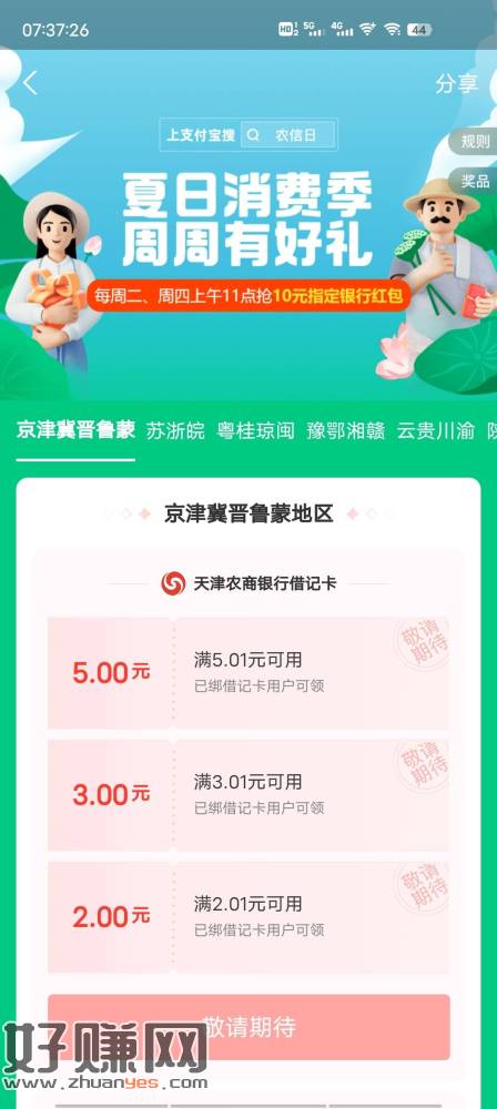 zfb搜农信日11点 全国农信卡都可玩 一个卡10毛