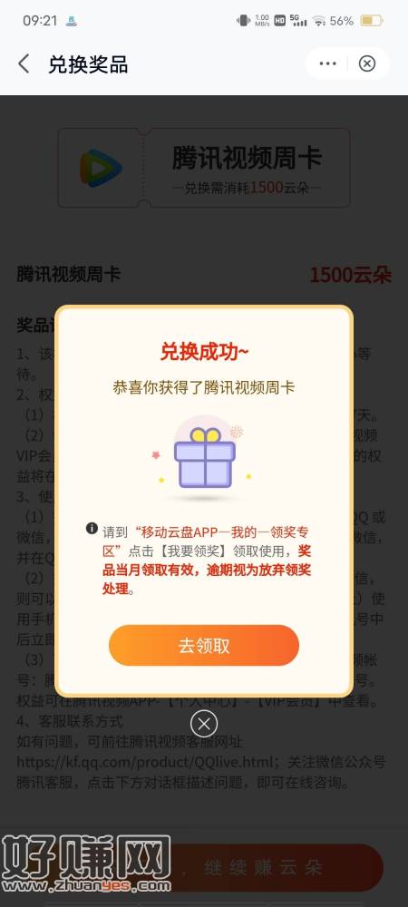 中国移动云盘 每天做任务 领云朵 兑换会员