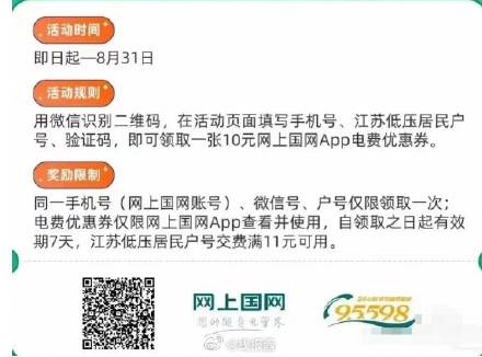 江苏地区,可领网上国网电费11-10券