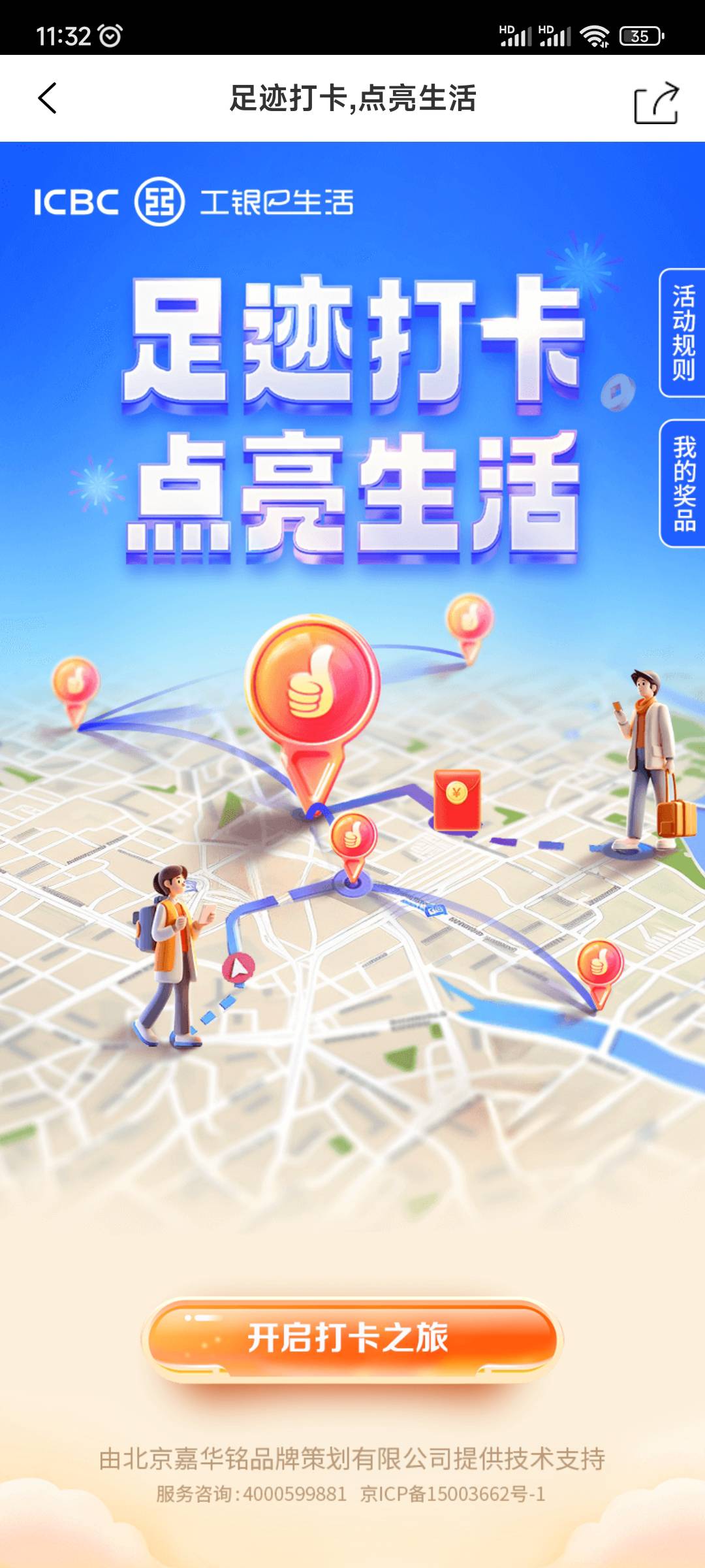 工银e生活APP 搜足迹打卡,进去打卡抽奖,首抽貌似必中,看得上的去吧
