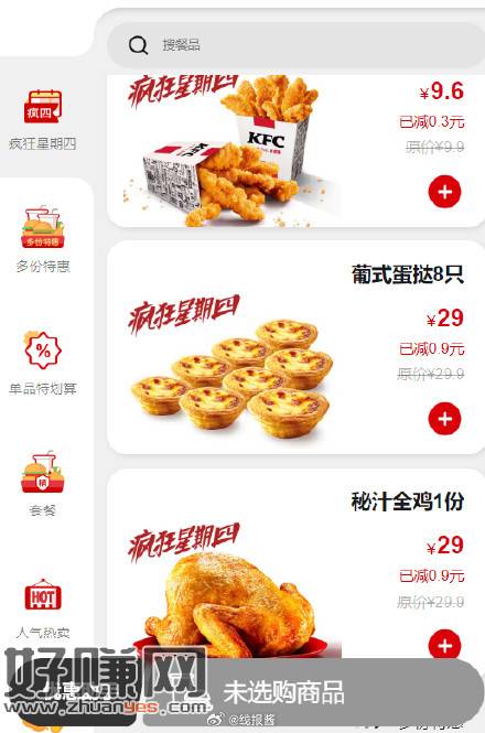 肯德基疯狂星期四来了,本周没有香菇鸡了,按需扫码点