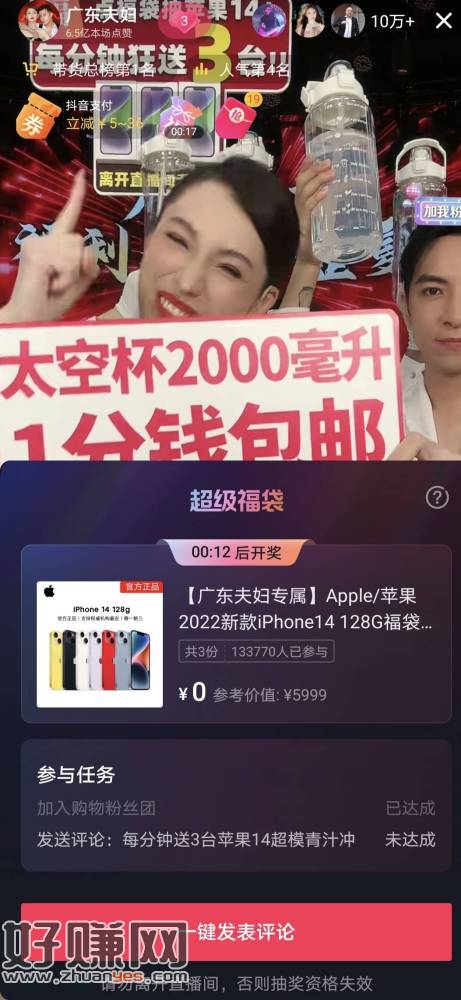 抖音广东夫妇直播间秒杀和福袋手机,蹲抢。