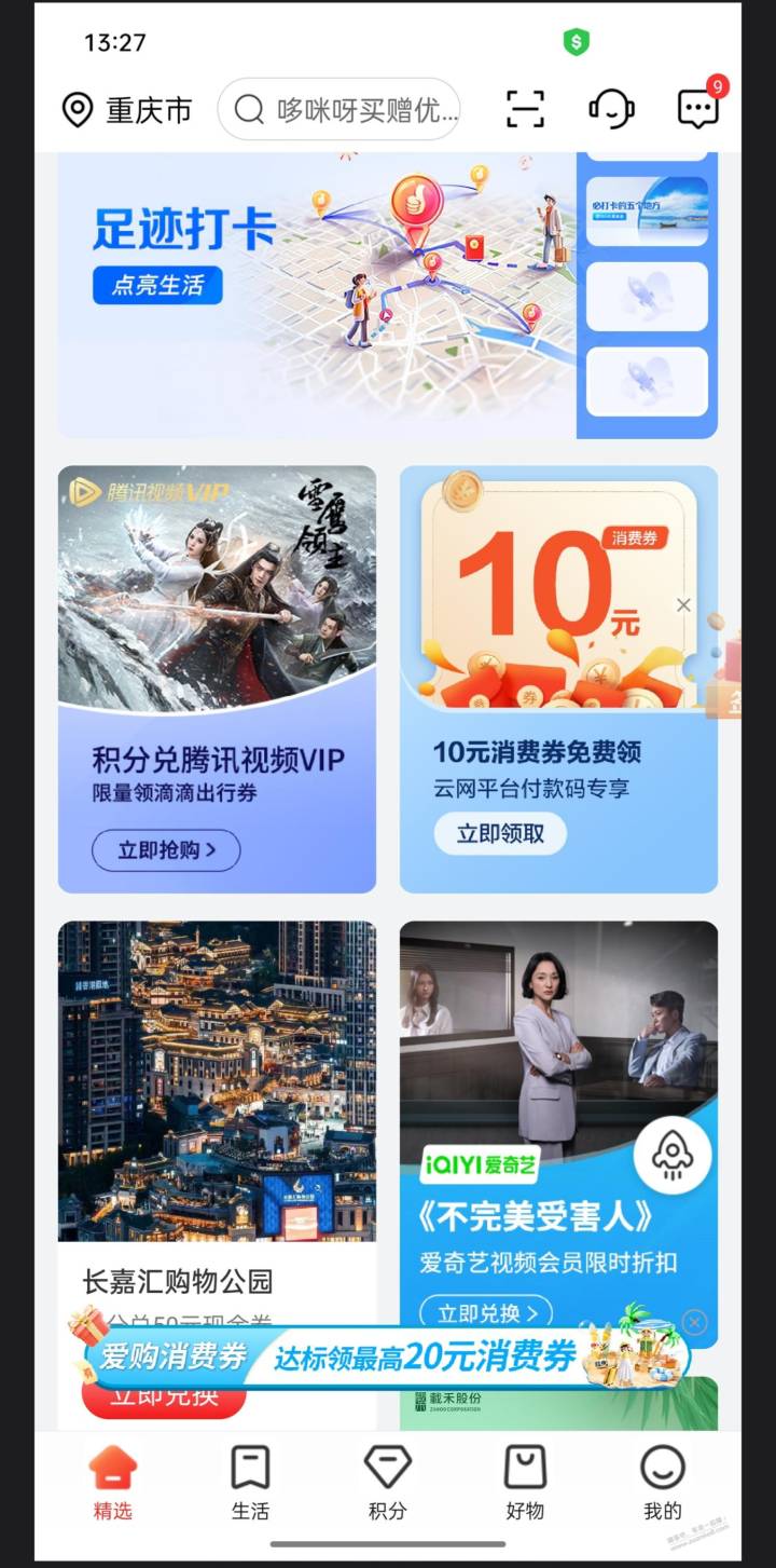 工银e生活,改定位重庆,下拉 11-10,10-5 国网生活缴费,选银
