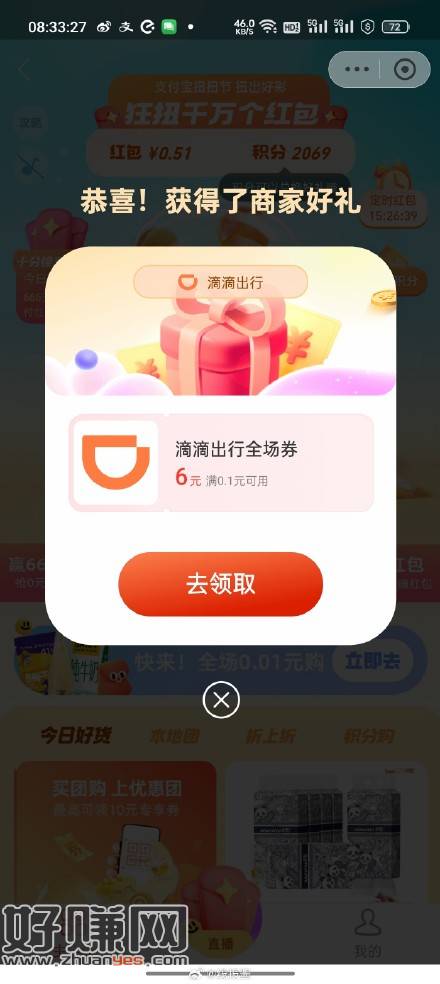 支付宝搜扭一扭,多试几次,有滴滴打车券