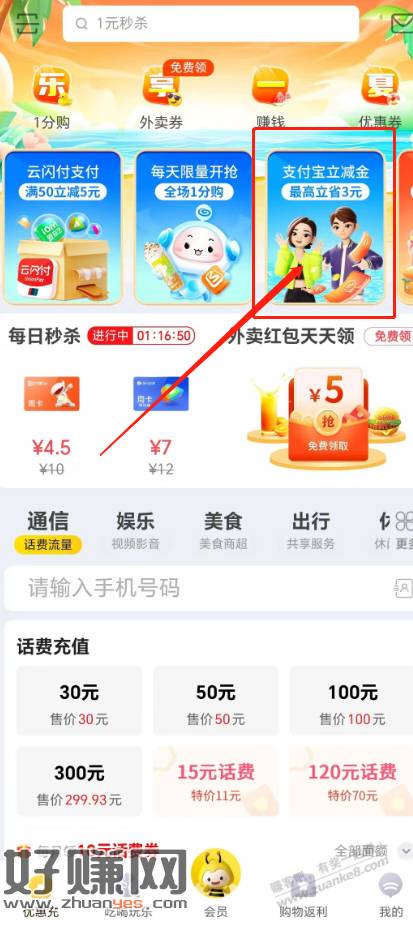 支付宝3元立减金,随机抽中的,最高3元,每天2次