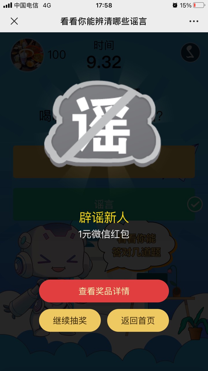 小毛,看不上不用去,vx公共号科学辟谣答题抽奖一号三次机会,可多号,(