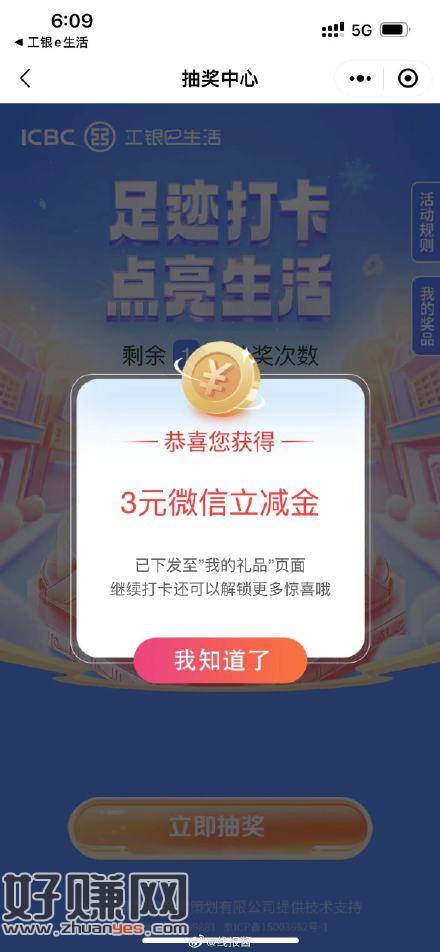 工银e生活APP,搜足迹打卡。任意一家店铺打卡可抽立减金。限制信用卡
