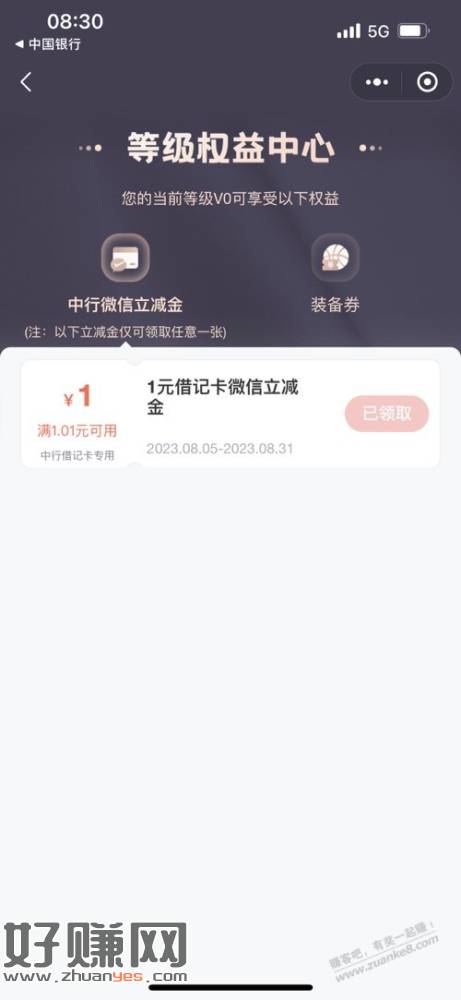 中国银行1元微信立减金