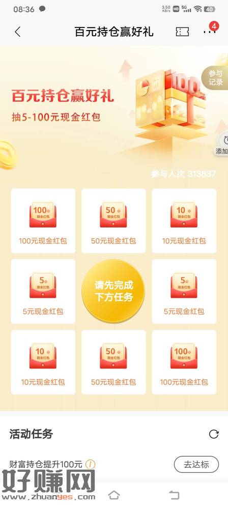 招商银行首页横幅:百元持仓,存100元进朝朝宝可以马上转出来,低保5元