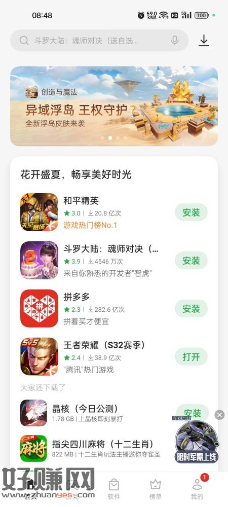 oppo手机 应用商店右下角 活动1块支付宝秒到账