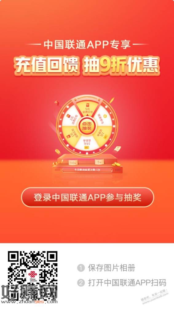 中国联通 充值回馈 抽9折优惠