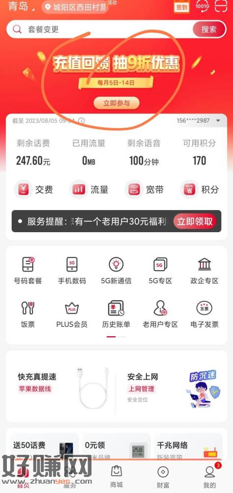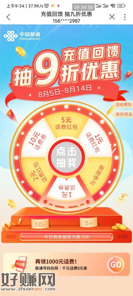 联通首页抽奖 然后购买充值卡 卖掉 利润看你抽到的券而定
