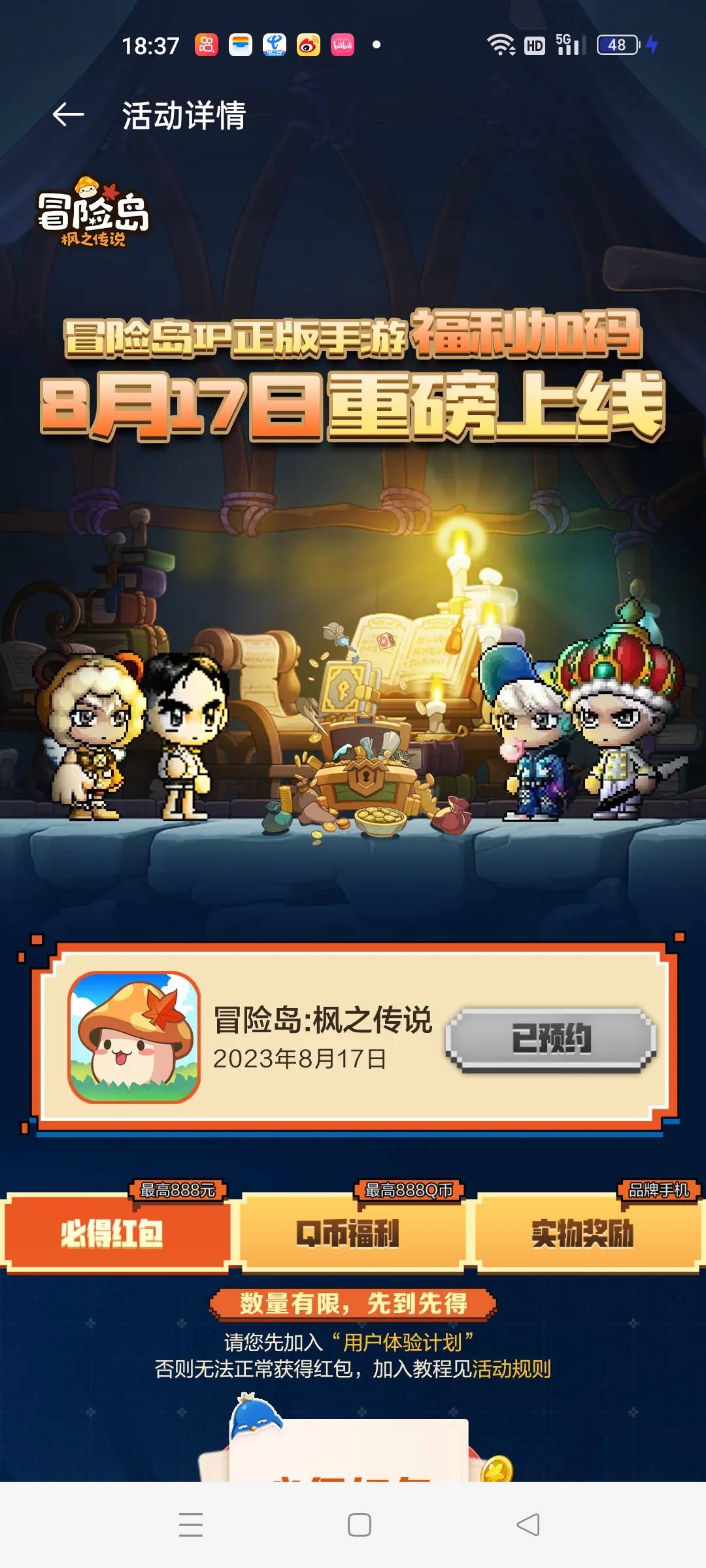 oppo游戏中心。预约冒险岛6个6毛,一个1毛 自测,我估摸oppo一